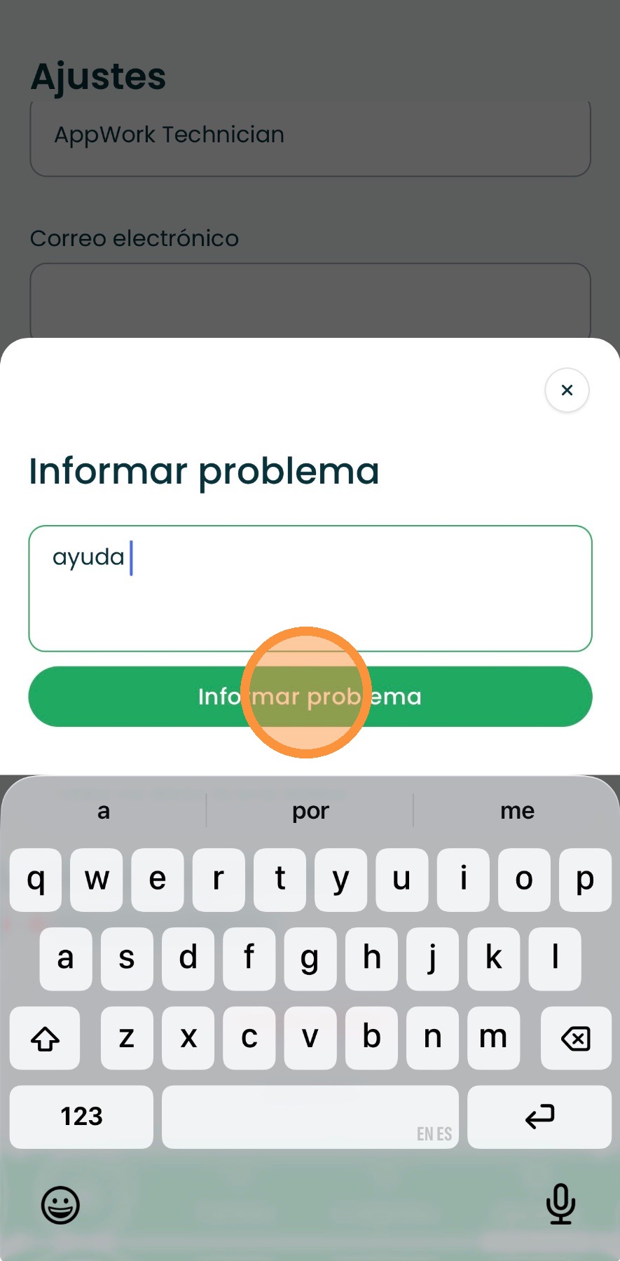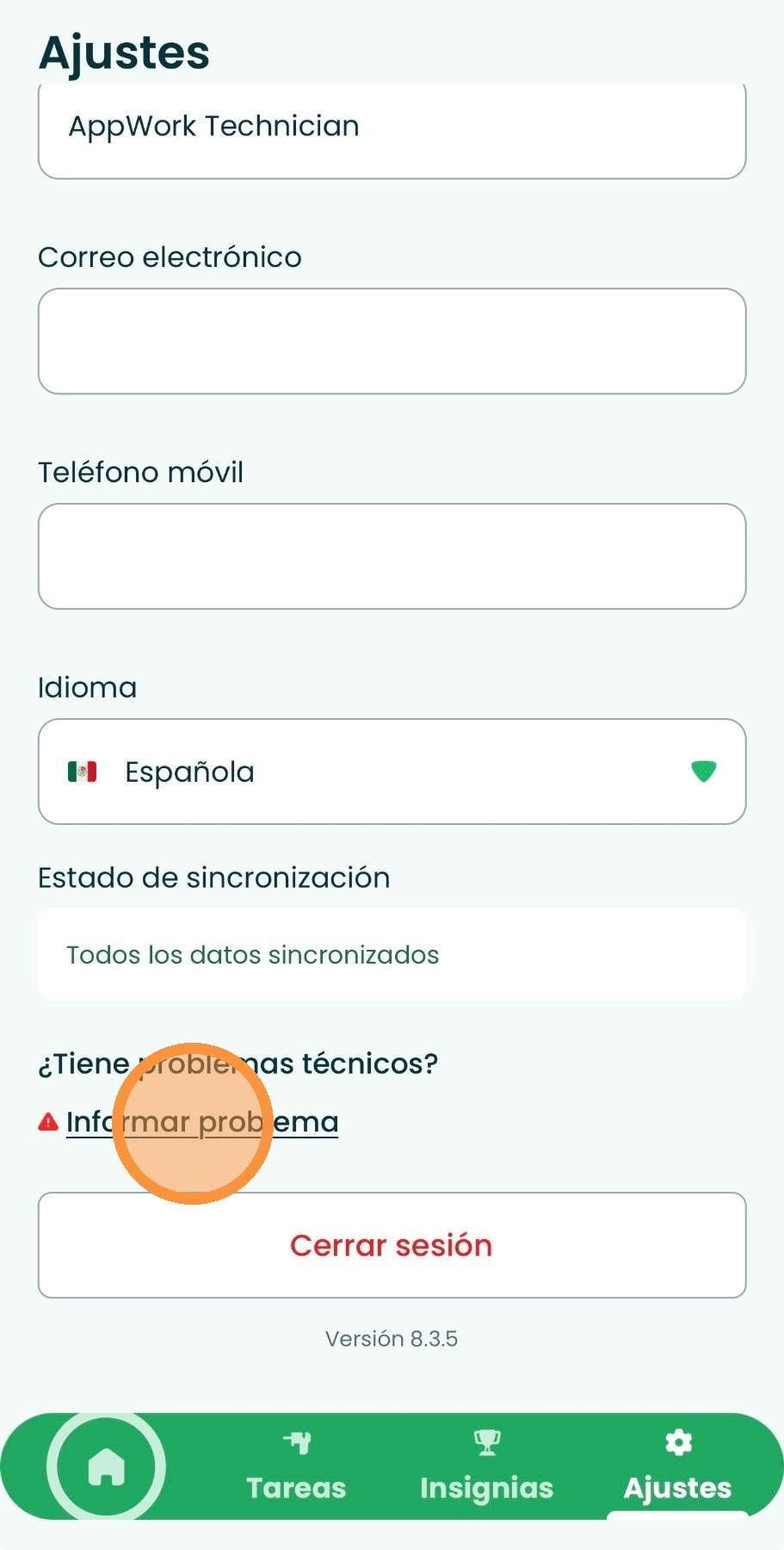 Cómo reportar un problema desde la aplicación del técnico.