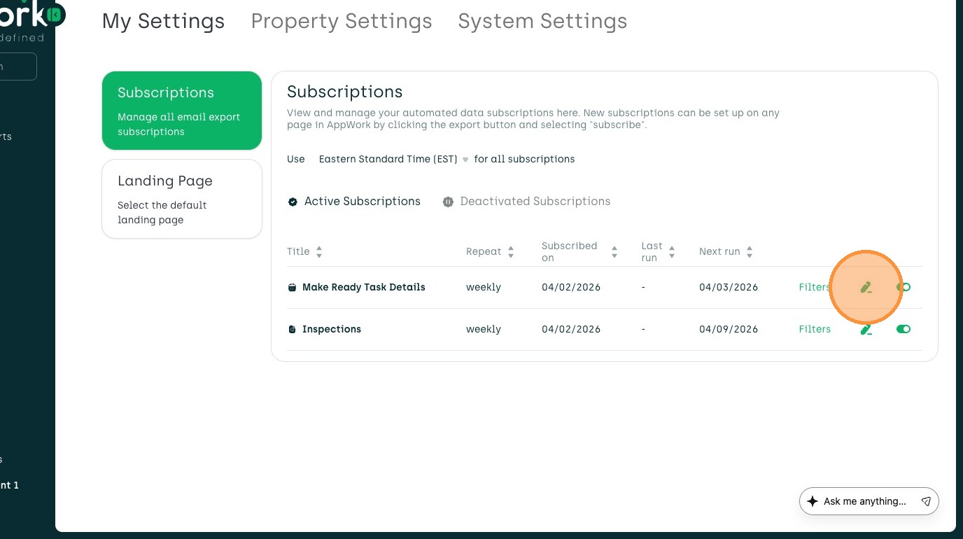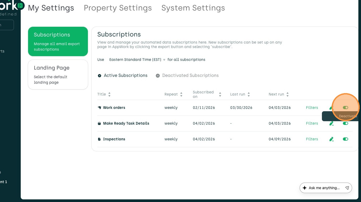 Learn how to configure your automated reporting preferences within the AppWork admin settings. This guide walks you through editing and deactivating the reports you are subscribed to.