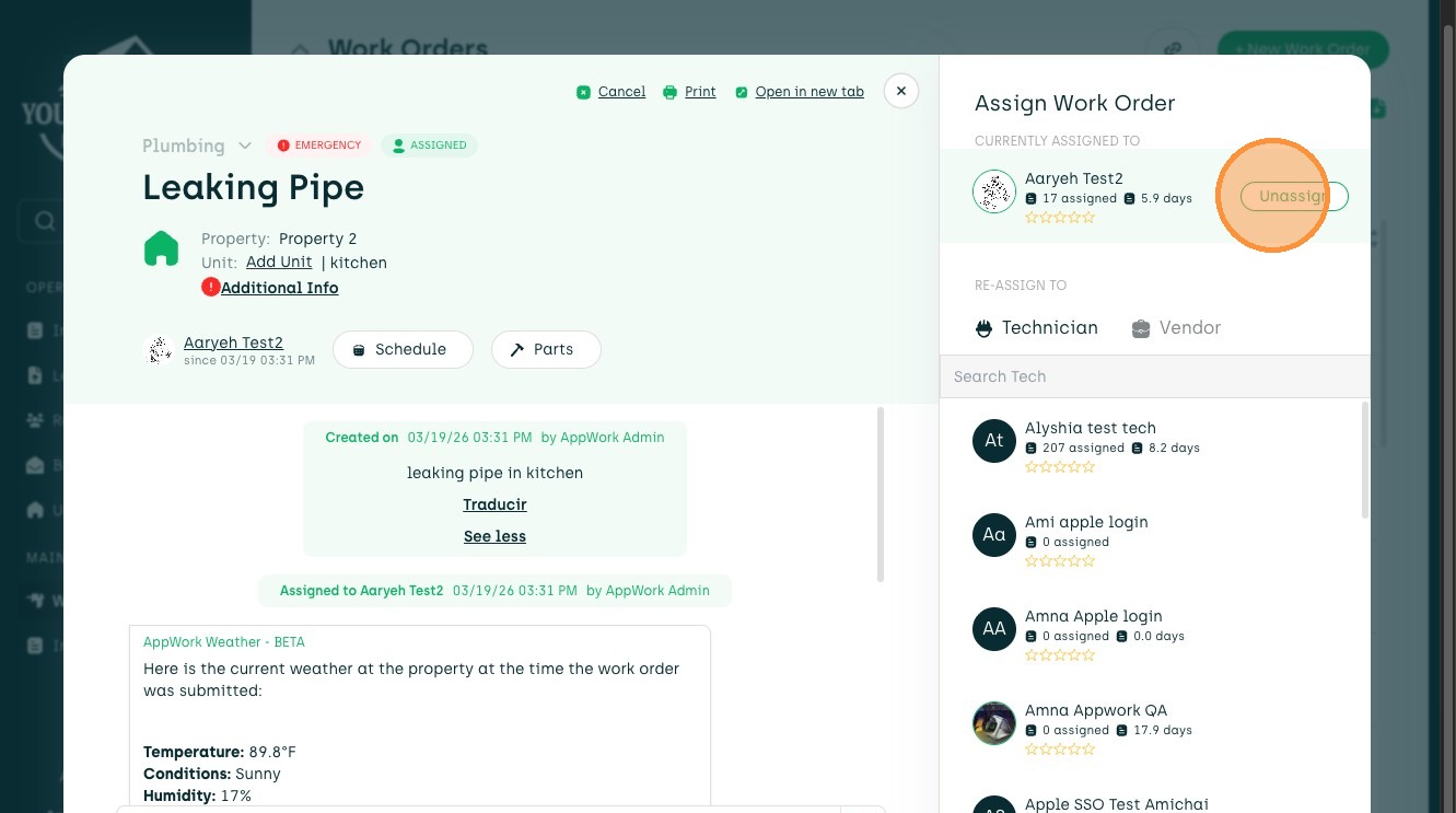 18. Un-assigning and Reassigning Work Orders
