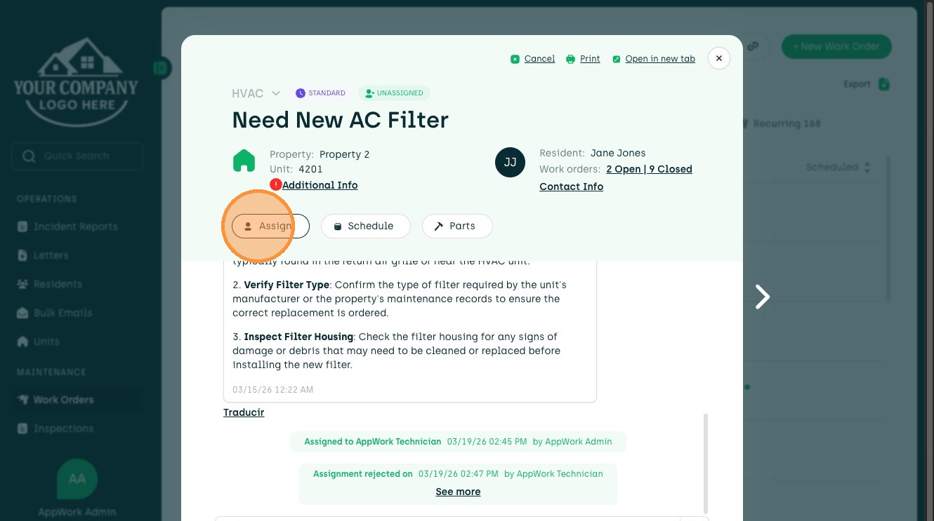 This guide demonstrates how to create, assign, and reassign work orders within the AppWork platform. Learn to effectively manage tasks for properties and technicians, ensuring efficient property maintenance and repair processes.