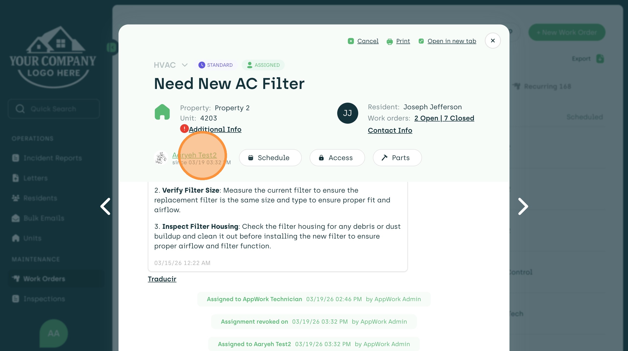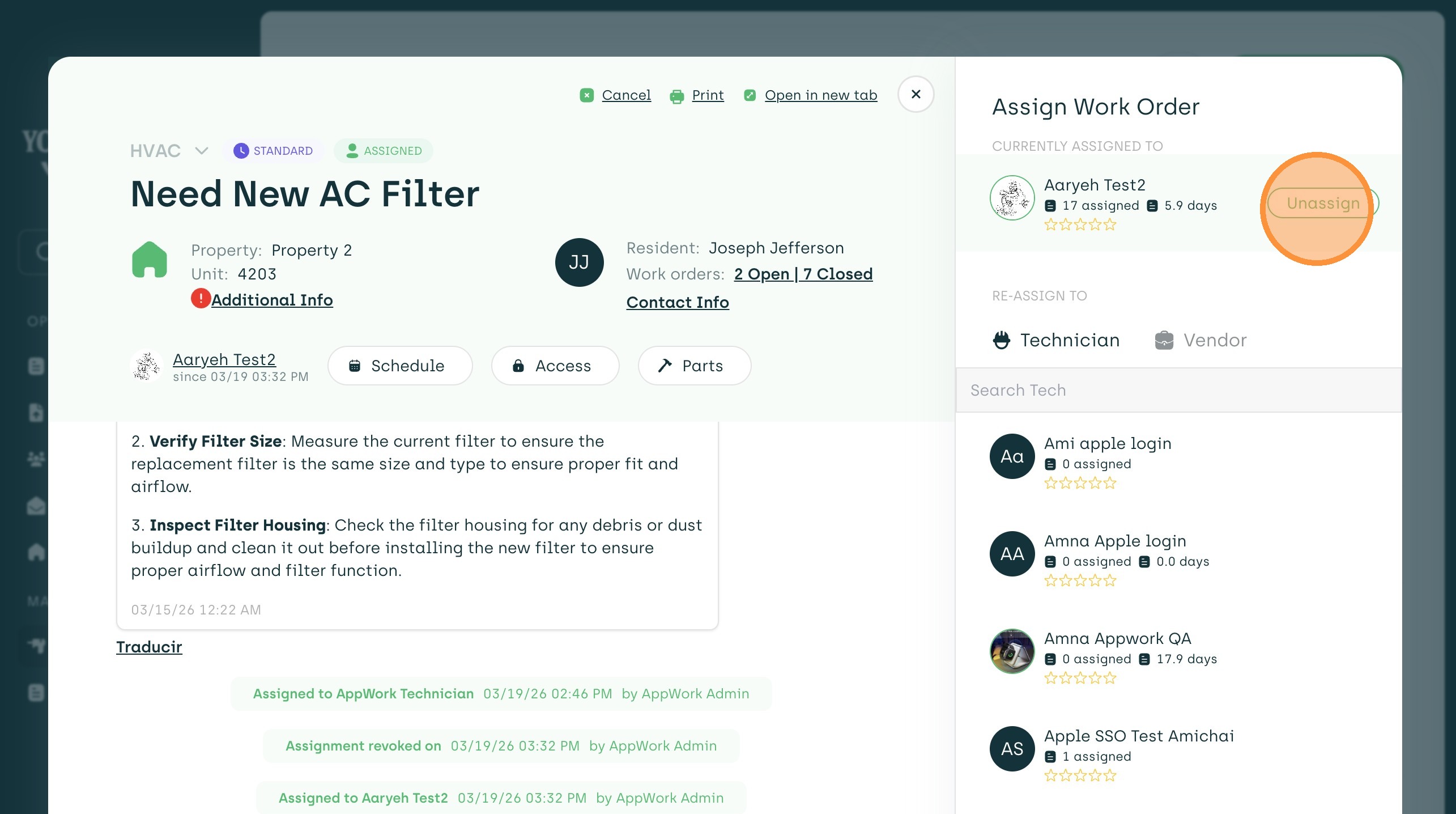 Learn how to remove a work order from an assigned technician in AppWork. This guide will walk you through the necessary steps to unassign a task, ensuring your workflow remains organized.