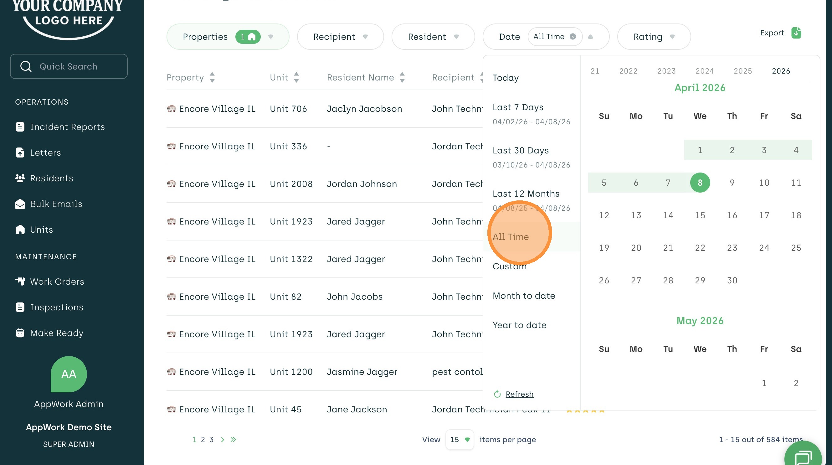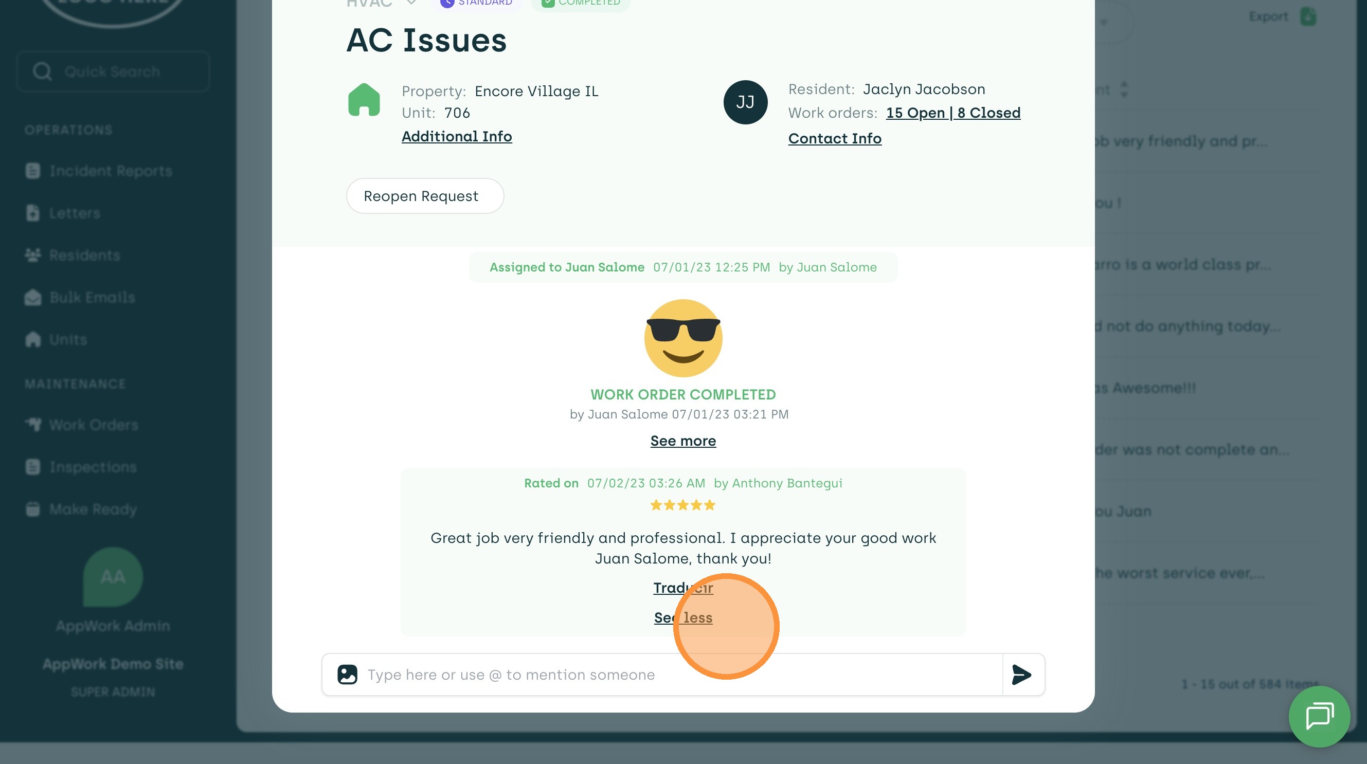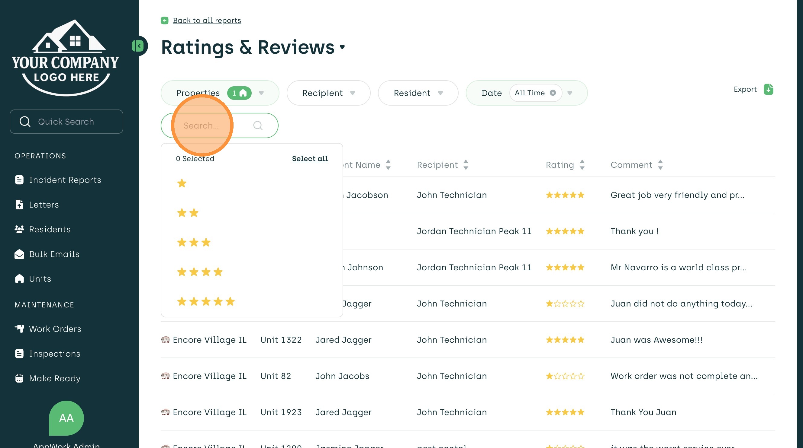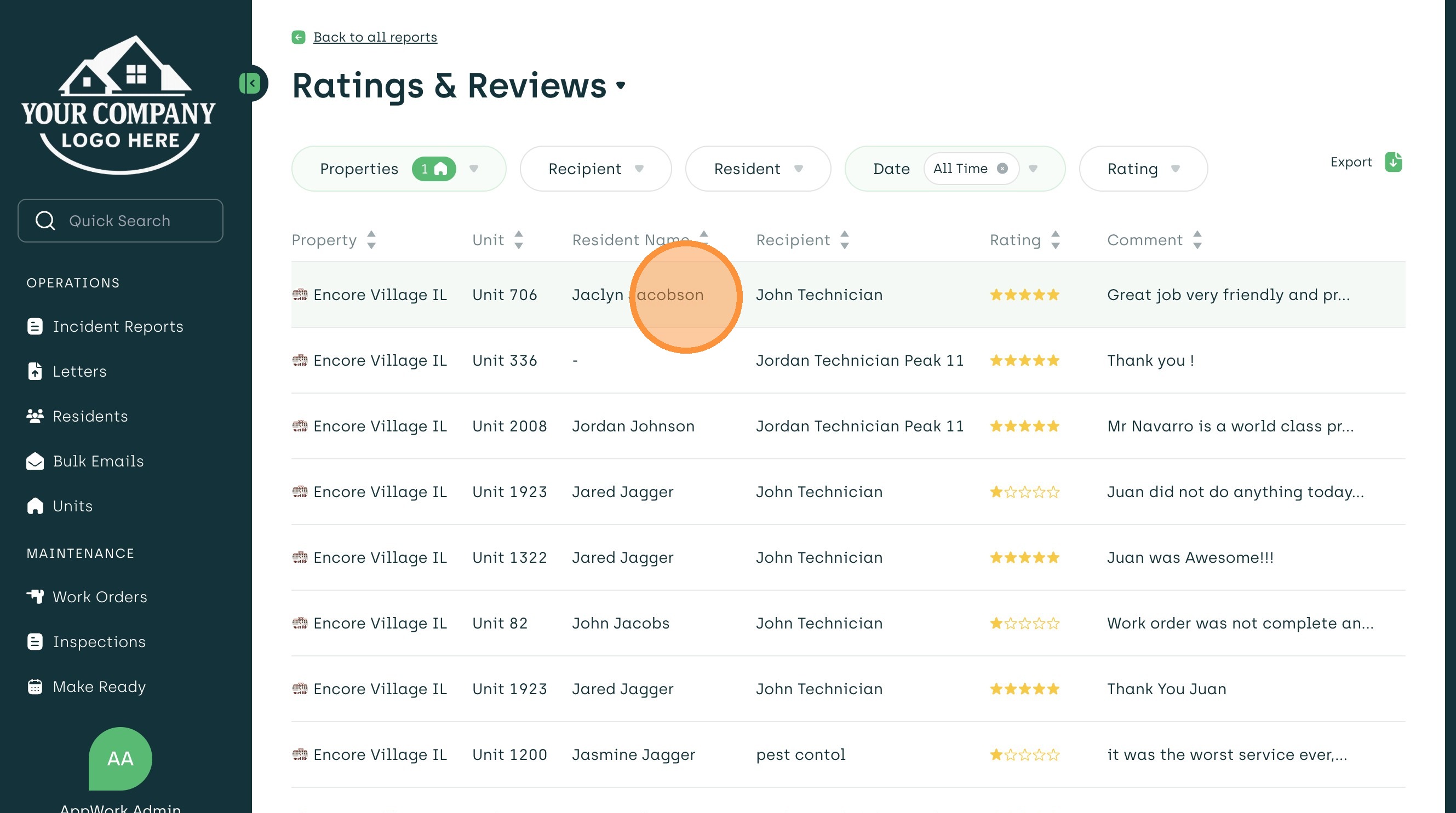 Learn how to access and filter detailed feedback from residents within the AppWork admin dashboard. This guide helps property managers effectively monitor service quality and review specific resident comments.