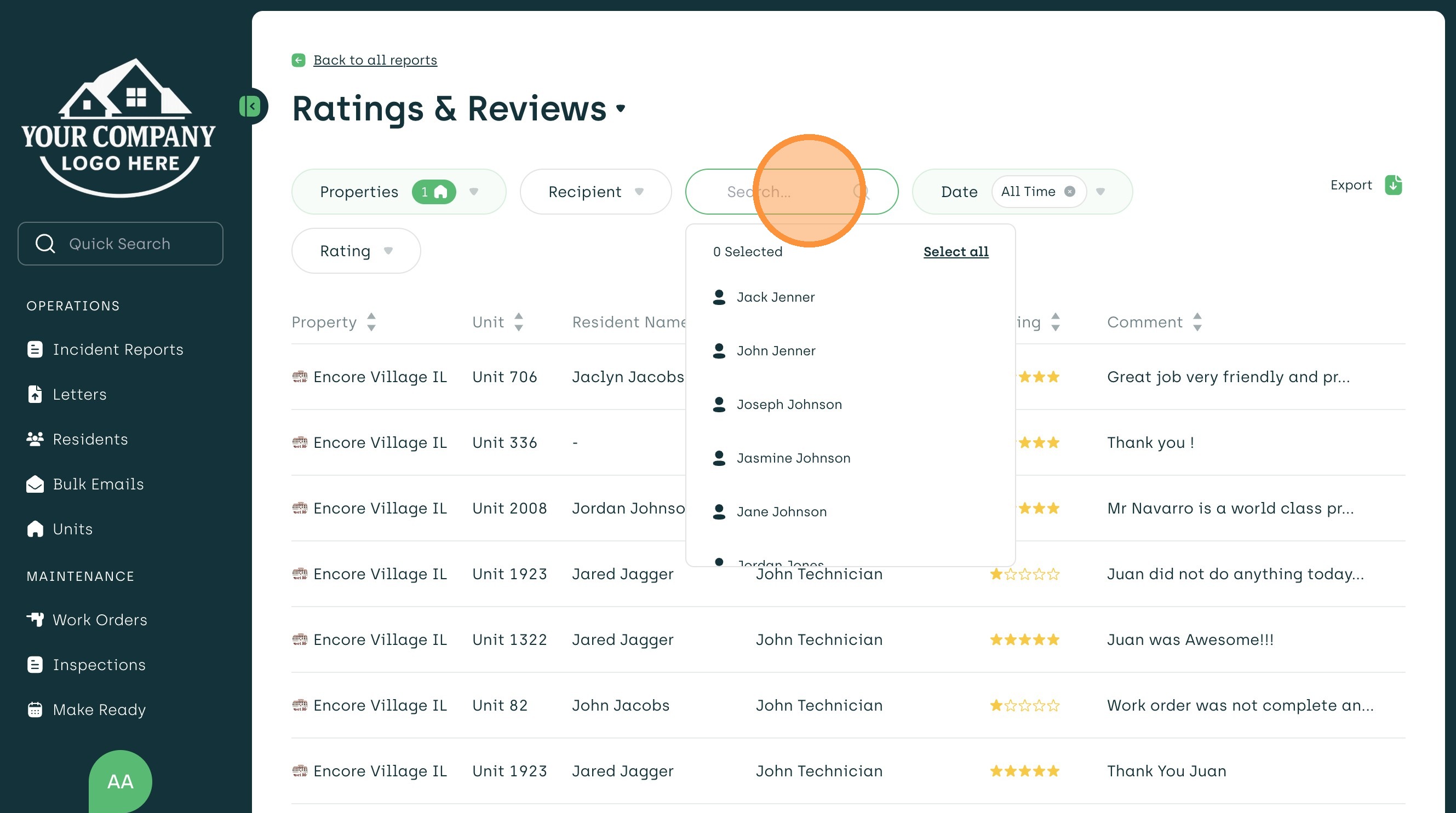 5. You can also select a Resident to filter by.