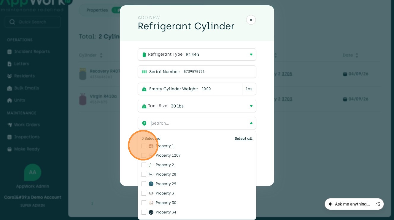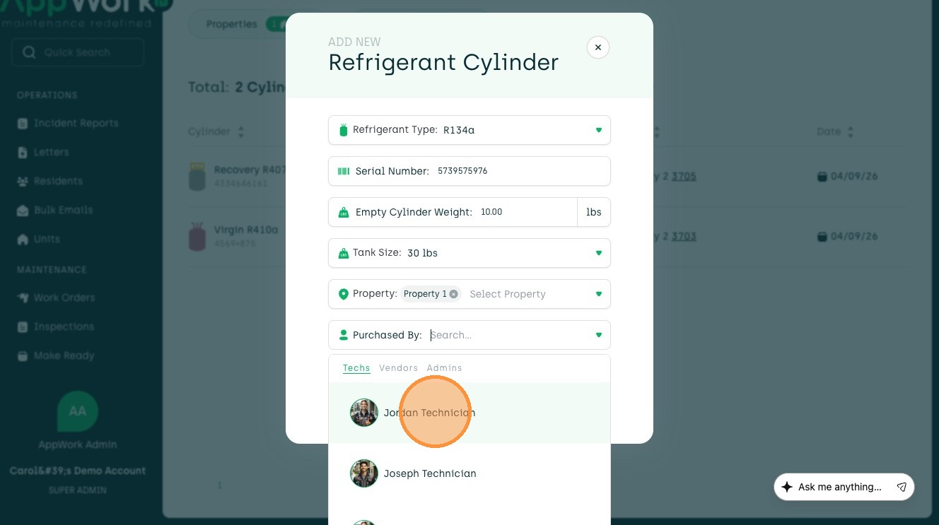 Follow this guide to easily register a recovery refrigerant cylinder in your admin portal. This process ensures accurate tracking of your inventory and technician assignments.