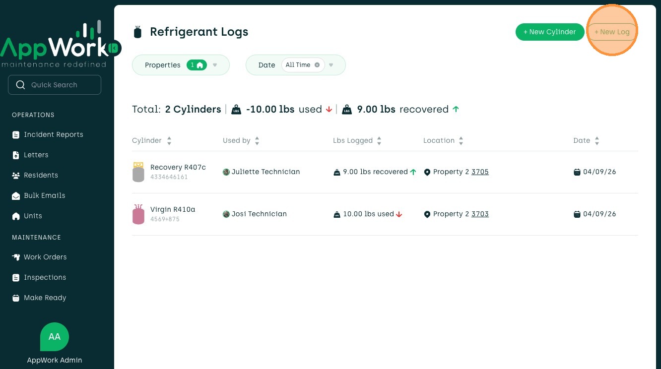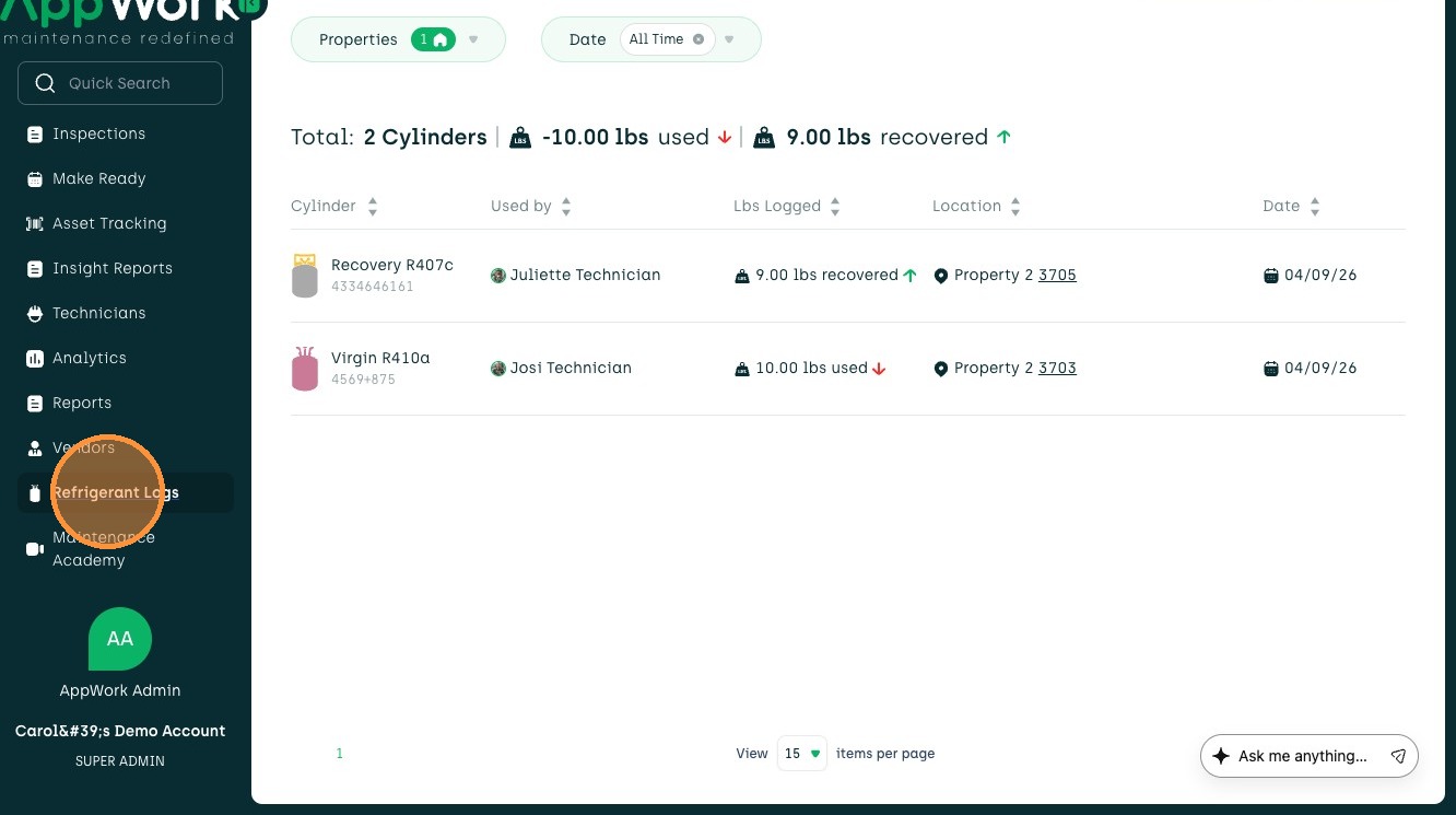 1. Navigate to Refrigerant Logs in the sidebar menu.
