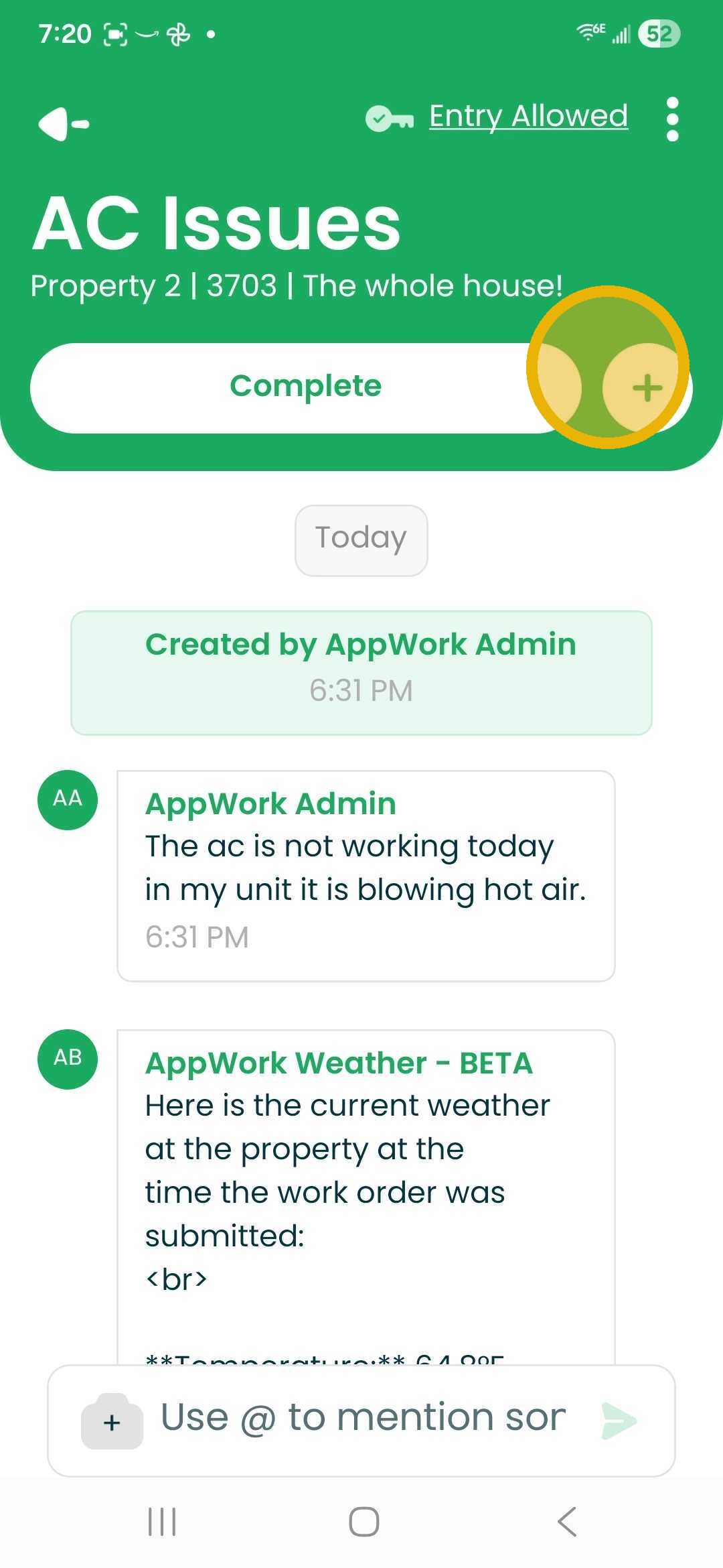 1. Open Work Order -Select the Plus Sign Next to the Start/Complete Button.