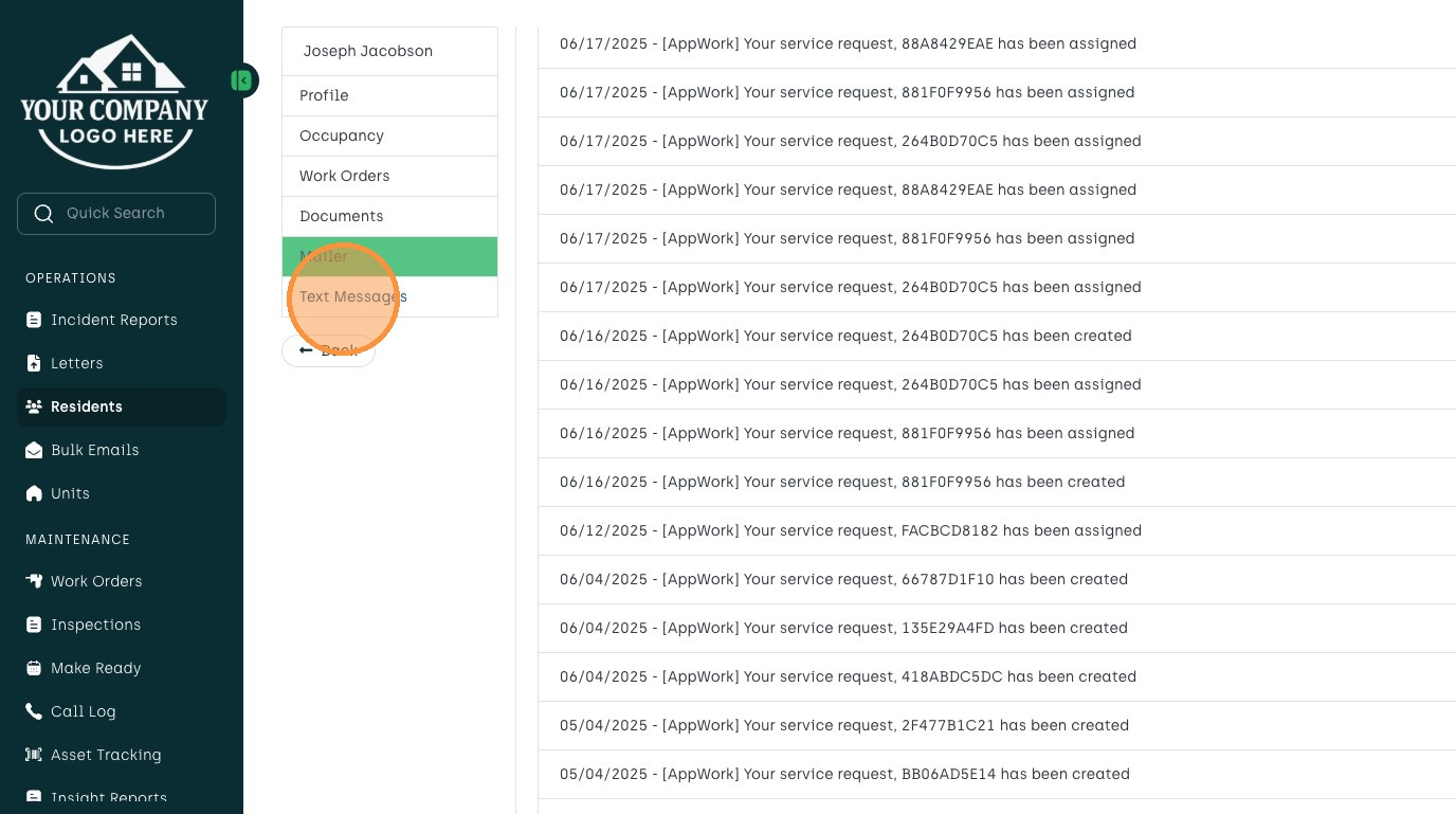 5. This is an inside look at the "Mailer" section, where you can see all emails sent and received to and from the Resident.