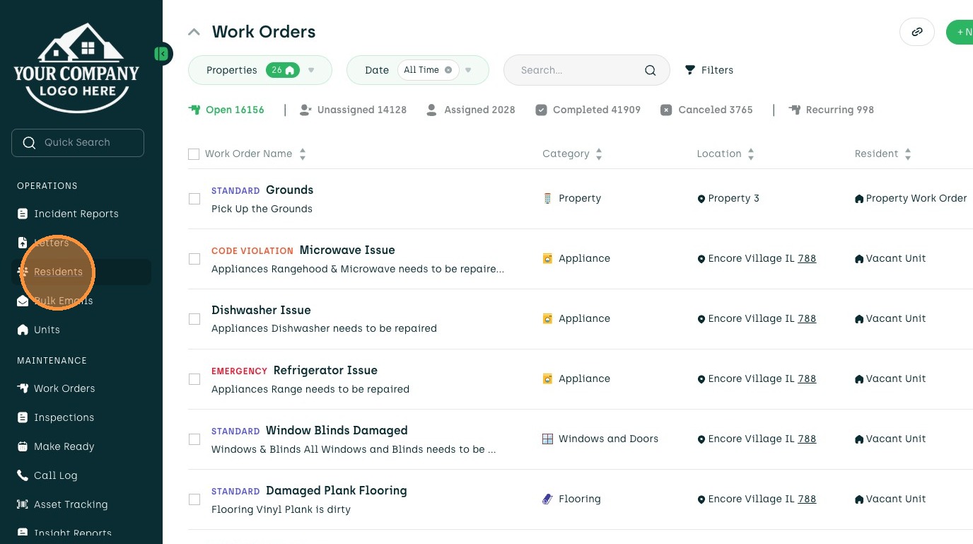 1. From your Admin Dashboard, you can navigate to the left-hand menu and find the "Residents" tab.