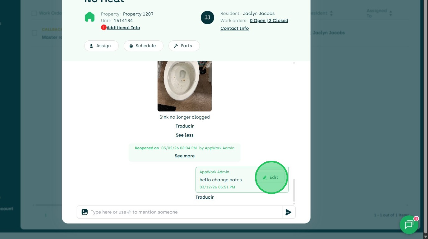 Update and Edit Work Orders