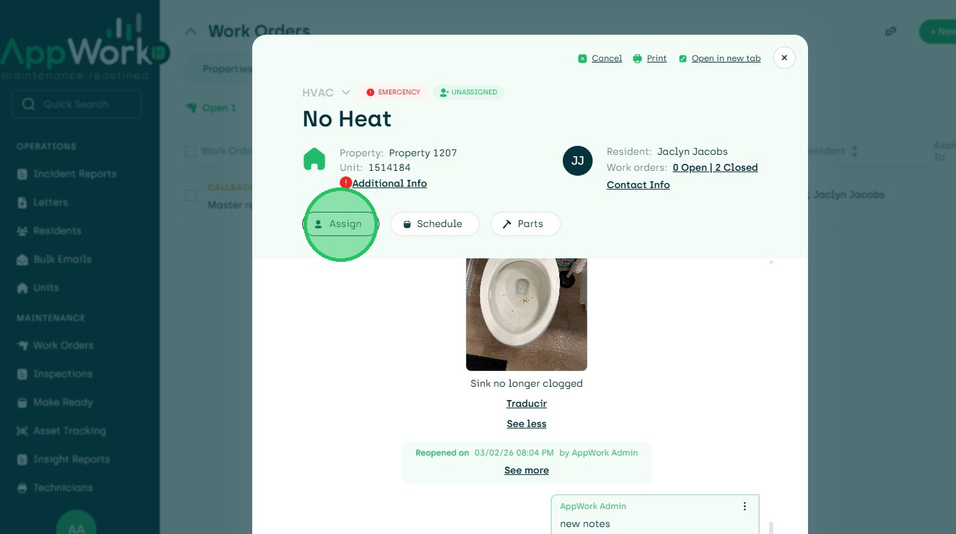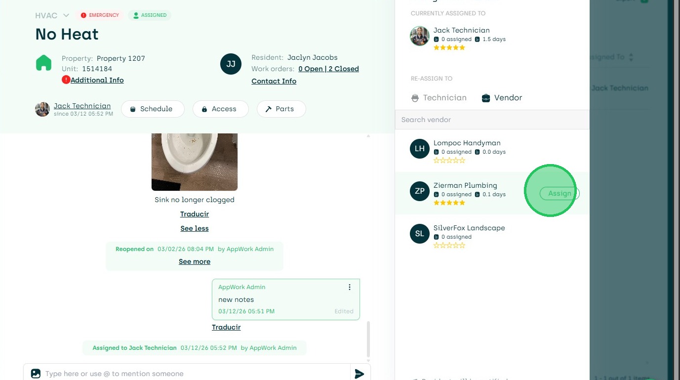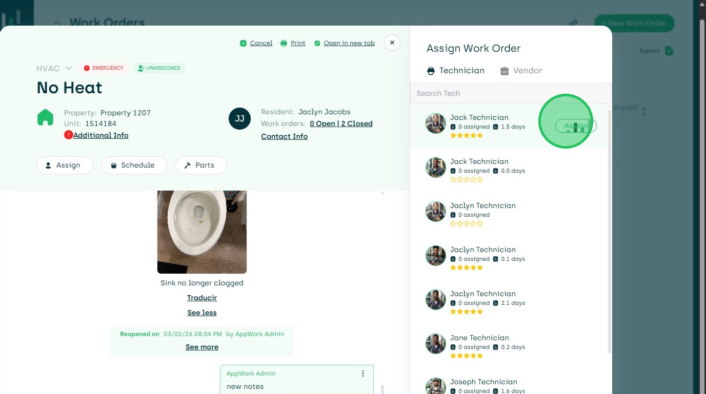 16. Choose New Assignment to Another Tech, Vendor Or Unassign