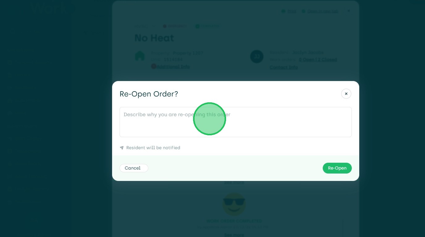 23. Describe Why the Work Order is Being Reopened.